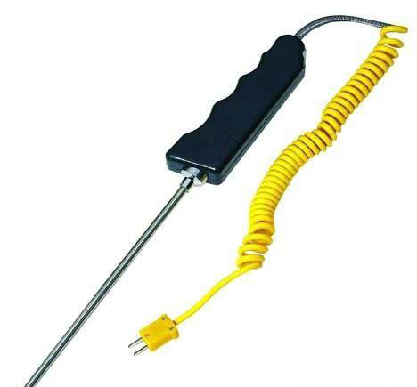 手柄式熱電偶專供測量各種形狀的固體介質表面溫度,以及測量液體、氣體和橡膠內部的溫度,使用范很廣,不受物體表面形狀限制,外形輕巧,攜帶方便,對于加工企業,使用尤為廣泛。 該產品與數字溫度表配合使用,用于測量物體表面和液體溫度,被廣泛用于冶金、化工、紡織、印染、造紙、橡膠、塑料、陶瓷、鋁合金、糧倉等工業部門。